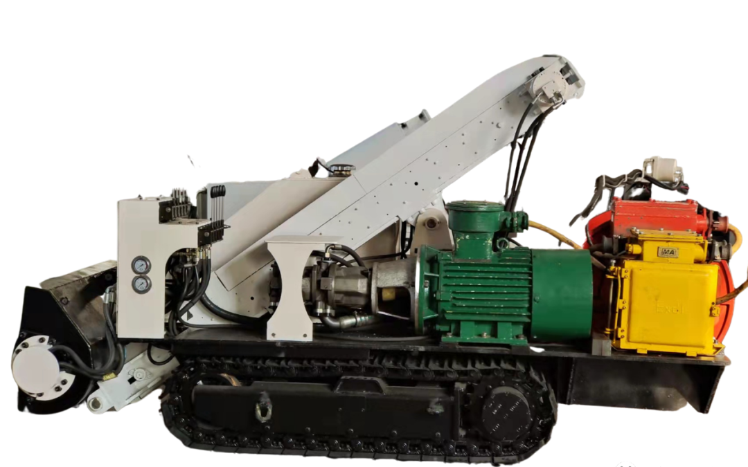 螺旋收集部采用液壓馬達驅(qū)動,安全可靠,裝載效率高;機體方便拆卸、運輸、穩(wěn)定性高;履帶行走,機動靈活,爬行能力強;轉(zhuǎn)載部可向左、右各90°旋轉(zhuǎn),實現(xiàn)落煤點無死角;冷卻方式采用風冷,這種風冷方式結(jié)構(gòu)簡單、體積小、重量輕、熱阻小、換熱面積大、 使用安裝方便、它的散熱效果較高。
